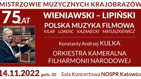 BILETY Jubileusz 75-lecia Urodzin Konstantego Andrzeja Kulki/WIENIAWSKI/LIPIŃSKI/POLSKA MUZYKA FILMOWA NOSPR w Katowicach14.11.2022g. 20:00 Konstanty...