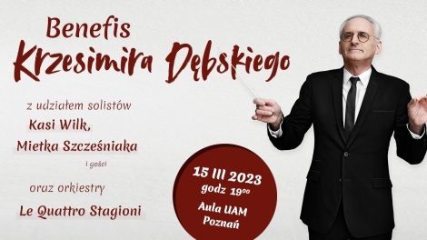 15.03.2023, g. 19:00Aula UAMPoznań, Wieniawskiego 1 BILETY Krzesimir Dębski – Benefis z okazji 50-lecia pracy artystycznej oraz 70 rocznicy urodzin...