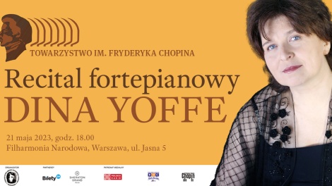 BILETY 21.05.2023godzina 18:00Filharmonia Narodowa w Warszawie Recital fortepianowy Diny Yoffe 21 maja 2023 roku o godz. 18.00 w Filharmonii...