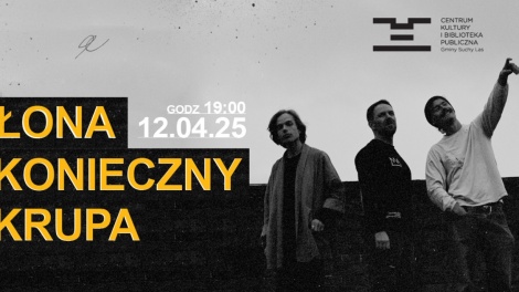 BILETY 12.04.2025 , g. 19:00 (sobota) Centrum Kultury i Biblioteka Publiczna w Suchym Lesie Łona x Konieczny x Krupa to kooperacja szczecińskiego...