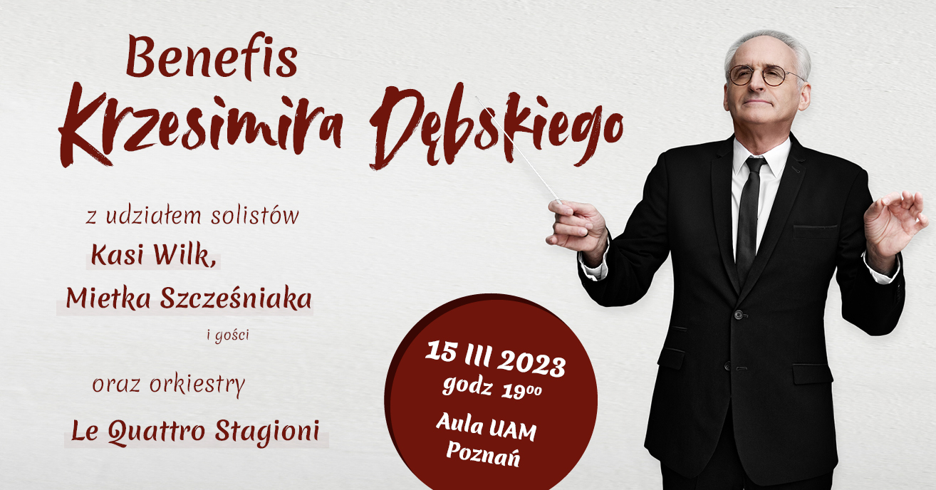 Krzesimir Dębski – Benefis z okazji 50-lecia pracy artystycznej oraz 70 rocznicy urodzin. Podczas koncertu wystąpi Jubilat, soliści Kasia Wilk i Mietek Szcześniak oraz orkiestra Le Quattro Stagioni wyjątkowo pod batutą Krzesimira Dębskiego (na co dzień te Orkiestrę prowadzi Tadeusz Żmijewski).