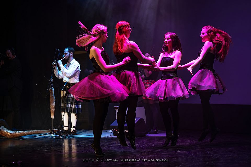TANIEC – układy choreograficzne tradycyjnych rytmów celtyckich w baletkach i w obuwiu do stepu irlandzkiego w wykonaniu Ellorien: aria, double-jig, hornpipe, jig, polka, reel, slip jig, step a apella, i inne – https://irlandzki.com