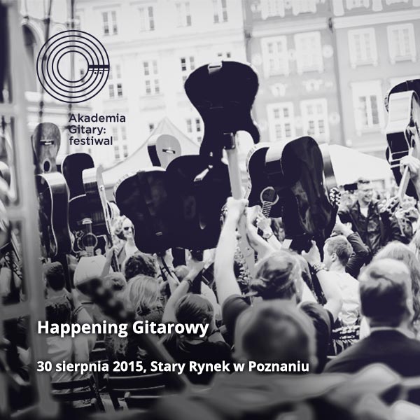 Światowy poziom tegorocznego Kursu Mistrzowskiego Akademia Gitary posiada także wymiar edukacyjny. Międzynarodowy charakter festiwalu stwarza wyjątkowe środowisko do nauki i rozwoju, co wykorzystujemy podczas organizacji Kursów Mistrzowskich. Do uczestnictwa w kursach zapraszamy młodych adeptów gitary klasycznej, oferując im możliwość szlifowania umiejętności pod okiem wyjątkowej kadry nauczycielskiej, w której skład wchodzą najlepsi pedagodzy i uznani na całym świecie gitarzyści. Tegoroczny Kurs odbędzie się w dniach 23-29 sierpnia w Jarocinie. Zapisy trwają. Happening Gitarowy na Starym Rynku w Poznaniu. Kulminacją działań popularyzujących gitarę – stanowiących główną misję festiwalu – jest Happening Gitarowy na poznańskim Starym Rynku, gromadzący rok rocznie kilkuset amatorów tego instrumentu. Happening to zarazem największe wydarzenie w programie.