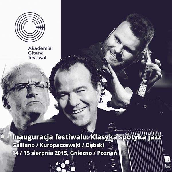 VIII edycja festiwalu Akademia Gitary odbędzie się między 14 sierpnia a 6 września. Rozpocznie ją wyjątkowy koncert inauguracyjny, podczas którego na scenie spotkają się francuski wirtuoz akordeonu Richard Galliano, wybitny gitarzysta klasyczny Łukasz Kuropaczewski oraz orkiestra Teatru Muzycznego pod batutą Krzesimira Dębskiego. Podczas inauguracji będzie miała miejsce polska premiera kompozycji Petit Concerto autorstwa Aleksandra Tansmana. Opracowania utworu na gitarę i orkiestrę dokonał ceniony włoski kompozytor Angelo Gilardino, dedykując ją Łukaszowi Kuropaczewskiemu. Kompozycja zostanie prapremierowo wykonana 14 sierpnia w Archikatedrze w Gnieźnie oraz dzień później w poznańskiej Auli UAM.