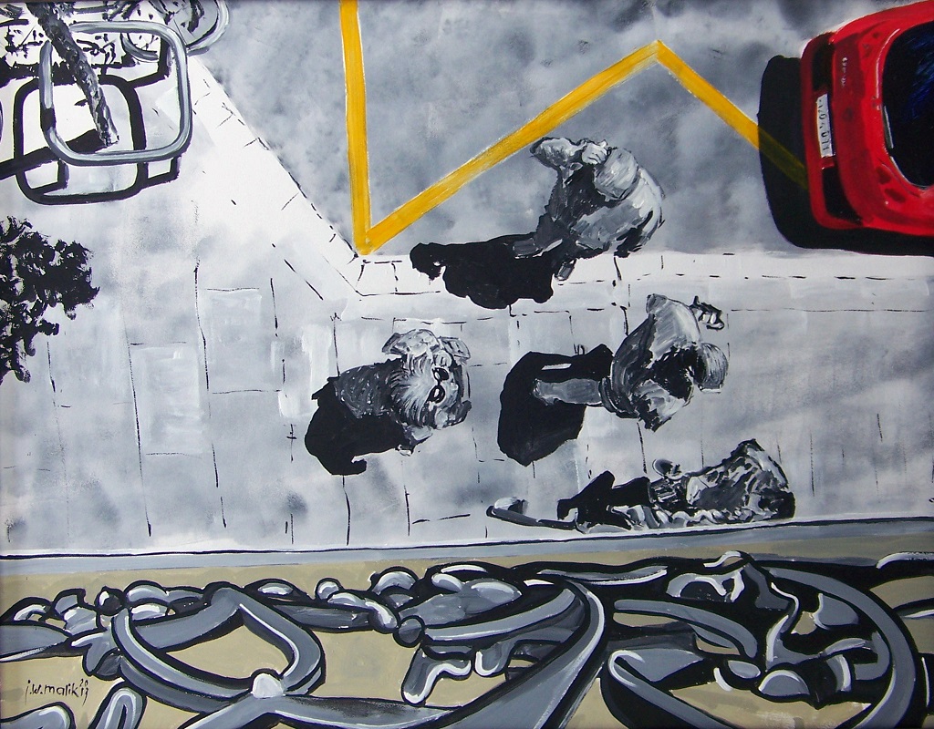 Codzienne sceny z życia polskich ulic: rowerzyści, kobiety z wózkami, zatłoczony przystanek, zwierzęta, lub cień ptaka w locie – wydawać by się mogło, że to banalne widoki, jednak pod pędzlem Jana Wojciecha Malika nabierają innego znaczenia! Wystawa pełna jest wyrazistości i charakteru. Dzięki skromności palety barw i podkreślaniu wybranych elementów, całość wielkoformatowych płócien nabiera „tajemniczości”.
