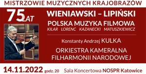 BILETY Jubileusz 75-lecia Urodzin Konstantego Andrzeja Kulki/WIENIAWSKI/LIPIŃSKI/POLSKA MUZYKA FILMOWA NOSPR w Katowicach14.11.2022g. 20:00 Konstanty Andrzej...