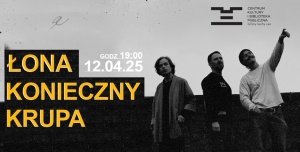BILETY 12.04.2025 , g. 19:00 (sobota) Centrum Kultury i Biblioteka Publiczna w Suchym Lesie Łona x Konieczny x Krupa to kooperacja szczecińskiego rapera z...