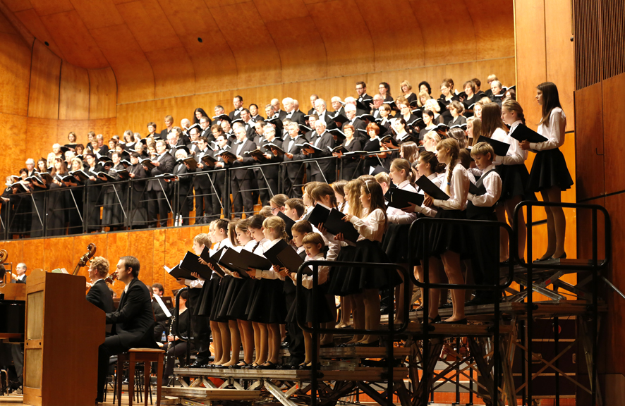 Dzieło to wymaga wielkiej obsady, więc obok orkiestry symfonicznej, orkiestry kameralnej, trojga solistów i połączonych chórów mieszanych wystąpiło 38 młodych śpiewaków. Wszystkich artystów na scenie było prawie 300!