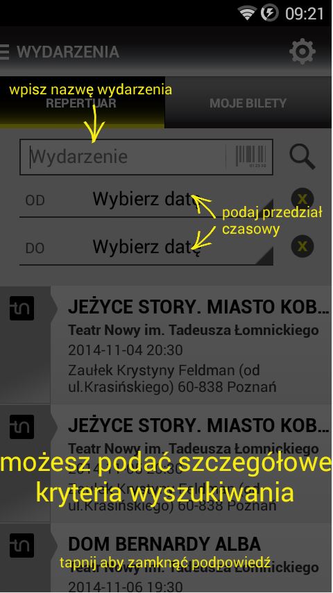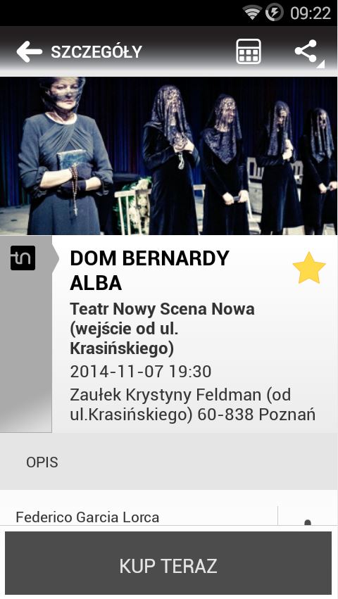 – ustawianie w kalendarzu przypomnień o spektaklu,
