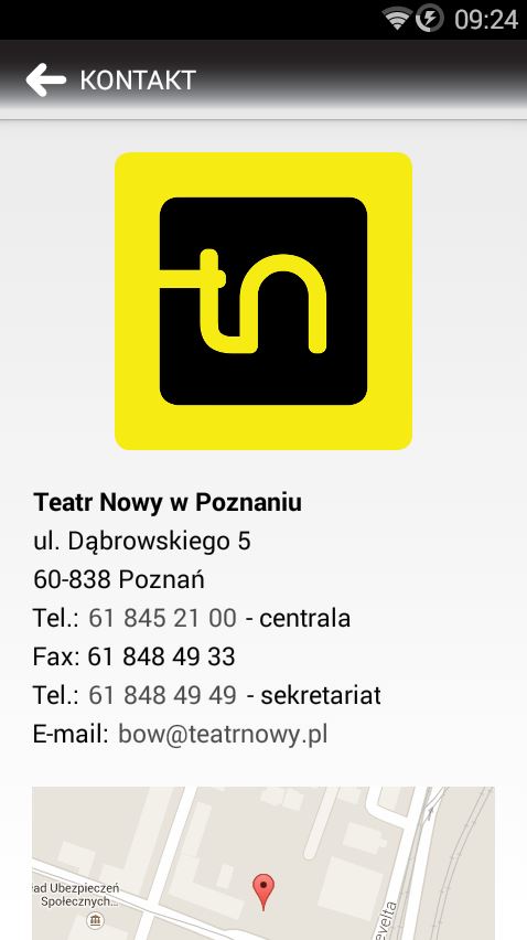 – przeglądanie danych kontaktowych Teatru,