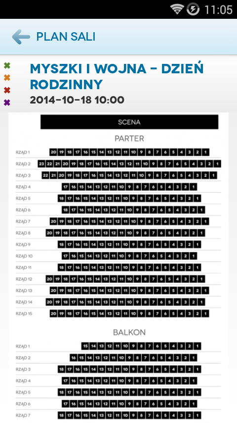 – podgląd zakupionych biletów w aplikacji, QR kod z biletem do okazania obsłudze wydarzenia przy wejściu,
