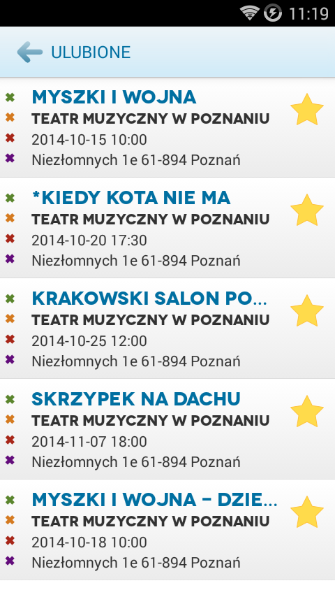 – dodawanie wydarzeń do ulubionych,