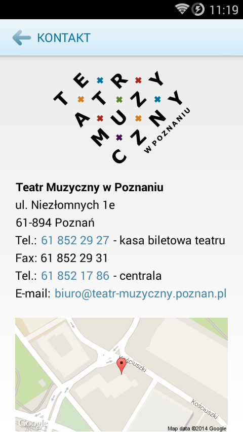 – przeglądanie danych kontaktowych Teatru,