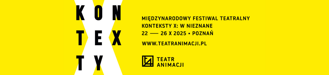 Międzynarodowy Festiwal Teatralny KONTEKSTY X: W NIEZNANE organizowany jest przez Teatr Animacji w Poznaniu. Dofinansowano ze środków Ministra Kultury i Dziedzictwa Narodowego pochodzących z Funduszu Promocji Kultury oraz ze środków Miasta Poznania.