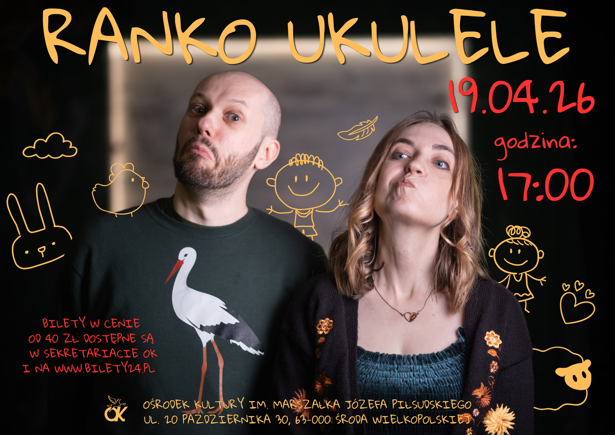Hej, miłośnicy dobrego humoru i dźwięków ukulele! Już 19 kwietnia o godz. 17:00 nasza sala widowiskowa zamieni się w krainę luźnych skojarzeń, humoru, ciepłych melodii i… pierogowych rozkmin. Na scenie wystąpi Ranko Ukulele – artystka z Poznania, która podbiła serca słuchaczy swoimi lekkimi, zabawnymi piosenkami. Jej utwory, takie jak „Kluska” czy „Żaklin”, to gwarancja uśmiechu (i być może nagłej potrzeby zjedzenia czegoś). Jeśli w głębi serca czujesz, że trochę jesteś pierogiem – nie może Cię zabraknąć*******