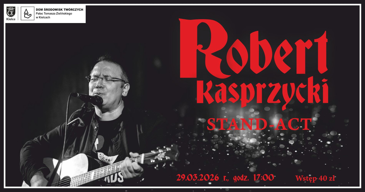 Artysta zaprasza: Kielce! Czyli Dom Środowisk Twórczych i jego cudowna widownia. Kielce – czyli kawa w kawiarence. Kielce – czyli okazja do pokazania rozmaitych pieśni i nowych satyrycznych wstawek. Kielce – czyli dwie godziny nie nasze. Przeboje, podboje, miejscami kowboje, step poezji pełen i poezja pełna stepu – zapraszam gorąco – będzie tak jak nigdzie – śmiech się z zadumą połączy, a zimowa zaduma z wiosną. Już się cieszę! Robert Kasprzycki W muzyce Roberta Kasprzyckiego odnaleźć można ślady wielu inspiracji: „Niebo do wynajęcia” było mieszanką flamenco, popu, jazzu, bossanowy i folku. „Światopodgląd” – popisem rockowej energii. „Piosenki i Nie” – znakomitym nawiązaniem do tradycji klasycznej ballady. „Cztery” zaś połączeniem poetyckiej...