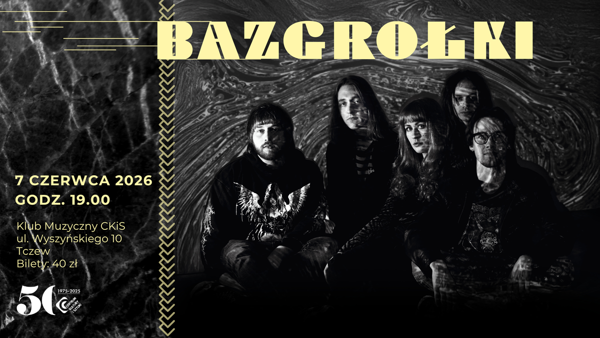 Hej Tczew! Jeśli siedzisz w domu i mówisz „nie ma co robić”, to wbijaj do Klubu Muzycznego CKiS. Na scenie Bazgrołki, trójmiejski projekt audiowizualny łączący ze sobą psychodeliczny noise i shoegaze w eksperymentalnym wydaniu. Na żywo zespół tworzy masywną ścianę dźwięku, której integralną częścią są generowane w czasie rzeczywistym wizualizacje autorstwa malarza Konrada Góreckiego — oparte na jego autorskich obrazach. Projekt ukształtował się w 2020 roku w Trójmieście. Od tego czasu konsekwentnie ewoluuje, kierując się ku coraz bardziej eksperymentalnym i intensywnym formom wyrazu. Najnowszy materiał otwiera nowy rozdział w działalności zespołu — jest cięższy, gęstszy i bezkompromisowy w brzmieniu. Rok 2026 przynosi najbardziej wyrazistą płytę...