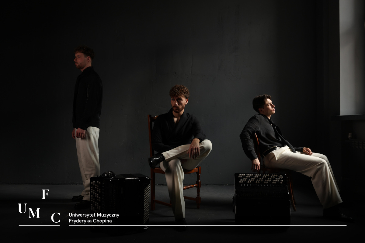 Koncert stypendystów Société Générale Środa na Okólniku Threek TRIO: Kacper Batycki Kacper Kaczmarek Krzysztof Polnik akrodeon W programie: Antonio Vivaldi – Le Quattro Stagioni op. 8 nr 2 g-moll, RV 315 „Lato”: III. Presto Edward Grieg – Suita z czasów Holberga op. 40 Krzysztof Penderecki – Polskie Requiem: Ciaconne Piotr Czajkowski – Suita Dziadek do orzechów op. 71a: I. Uwertura, II. Marsz, III. Taniec wieszczki cukrowej, IV. Trepak Mikołaj Majkusiak – Pięć myśli o Moniuszce: V. Prząśniczka Grażyna Bacewicz – Oberek nr 1 Astor Piazzolla – Yo Soy Maria Wojciech Kilar – Orawa*******
