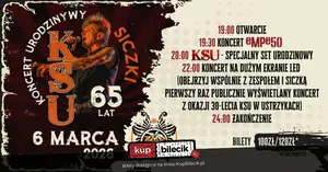 Zapraszamy 6 marca do Klubu Pod Palmą na koncert KSU z okazji 65 urodzin Siczki. Support: eMPe50. Bramy 19:00Start 19:30