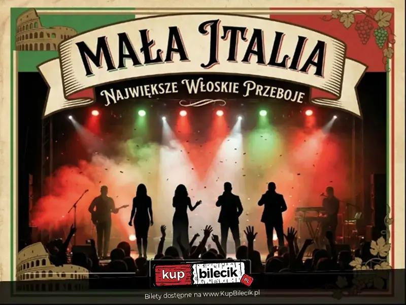 Ten koncert to czysta energia prosto z południa Europy. Włoskie hity, które wszyscy znamy i kochamy, w nowoczesnych, koncertowych aranżacjach. Na jednej scenie spotyka się 4 solistów i 3 instrumentalistów, tworząc show pełne rytmu, emocji i prawdziwego włoskiego temperamentu. Od przebojów, które nuci cały świat, po utwory, przy których publiczność nie potrafi usiedzieć w miejscu. To wieczór pełen hitów i emocji. Jeśli chcesz poczuć klimat włoskiego festiwalu, zaśpiewać razem z artystami i przeżyć koncert, który zostaje w głowie na długo - "Mała Italia" jest dla Ciebie.