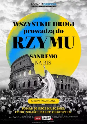 Wiadomo, że najpiękniejsza jest muzyka włoska - nie tylko opery Gioacchina Rossiniego, Giuseppe Verdiego czy Giacoma Pucciniego, ale też utwory z repertuaru Adriana Celentano, Al Bano, Andrei Bocellego, Drupiego (a to zaledwie początek alfabetu!). Muzyka włoska to także Festiwal w San Remo, którego złoty okres przypadł na lata 60. i 70., zaś niejedna gwiazda rozbłysła na tamtejszym niebie, rozpoczynając swoją karierę na brzegu Morza Śródziemnego: Toto Cutugno, zespół Il Volo... No ale czyż można się dziwić, że takie melodie powstają pod słońcem Toskanii, na falach laguny weneckiej, w cieniu Colosseum, pośród zaułków Neapolu? I my też chcemy zaprosić Państwa na ten magiczny wieczór z muzyką powstającą od Turynu do Sycylii, skąpany w śpiewności języka włoskiego, z udziałem zagranicznych wokalistów - odtworzymy tam razem atmosferę najsłynniejszych koncertów w San Remo. Pomogą w tym przeboje takie jak "Quando, quando", "Felicità", "Miserere", "Parole, parole", z których większość opowiada o miłości, bo wiadomo - jak piosenka włoska, to "Grande amore" (ten utwór też zabrzmi podczas naszego koncertu). A zatem - startujemy do Italii!