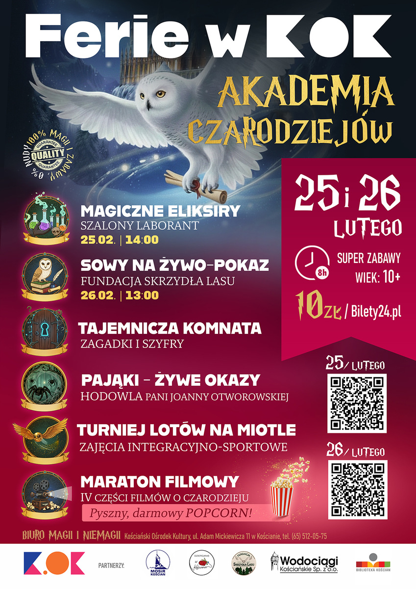 Ferie zimowe to coś więcej niż tylko wolne dni od szkoły. To czas, który może stać się prawdziwą przygodą, inspiracją i wspomnieniem na lata: dwudniowa "Akademia czarodziejów” – wydarzenie pełne filmu, ruchu, nauki i… prawdziwej magii. Już 25 i 26 lutego KOK przeniesie Cię się do świata zaklęć, eliksirów i tajemnic.