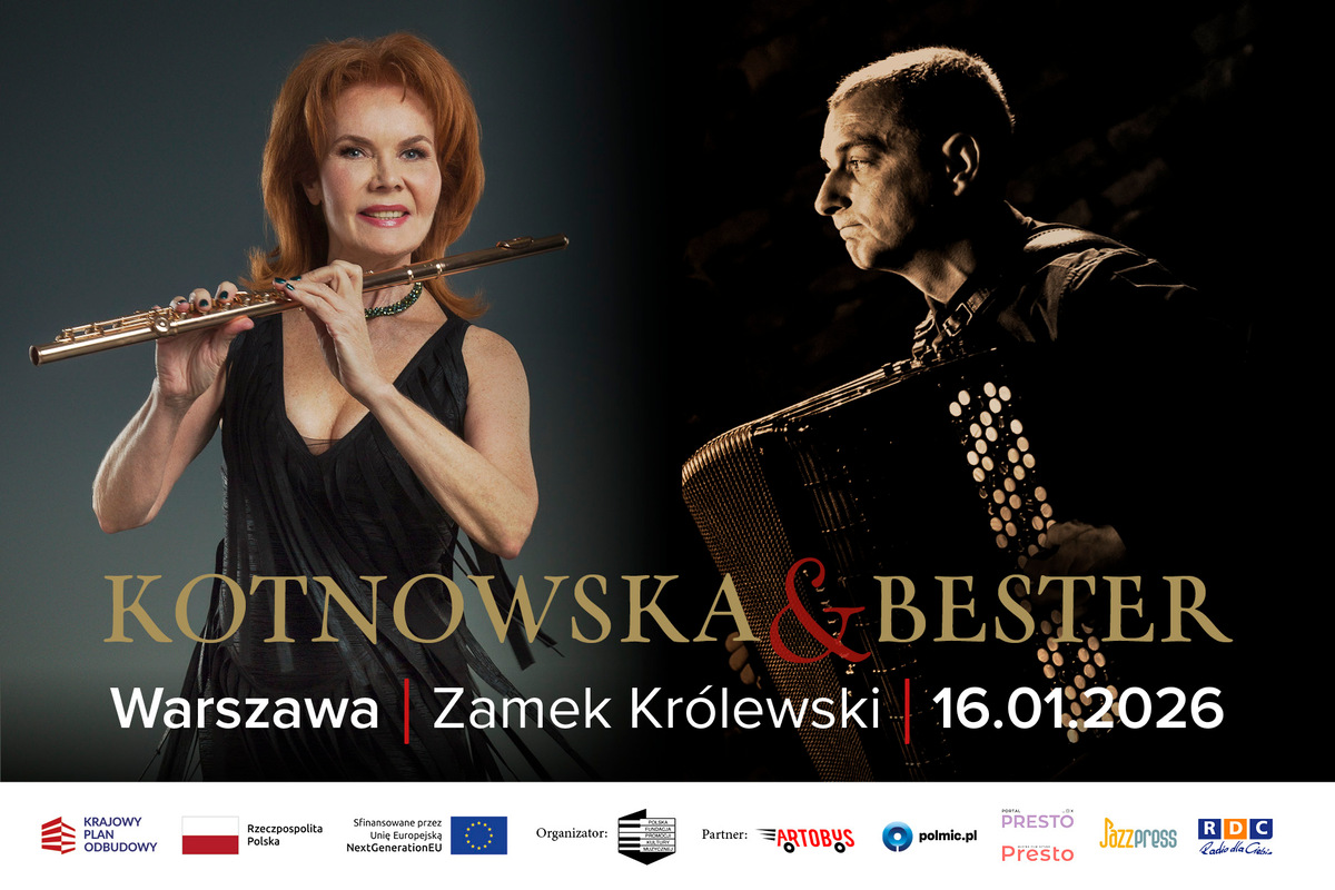 Duet Jadwigi Kotnowskiej i Jarosława Bestera to spotkanie dwóch niezwykle wyrazistych muzycznych osobowości, które łączą w swojej grze i twórczości bogactwo tradycji i nowatorskie podejście do interpretacji. Ich recital na flet i akordeon odkrywa przed słuchaczami pełen przekrój przez style, epoki i emocje w muzyce świata - od klasyki, przez tango i jazz, aż po muzykę współczesną.