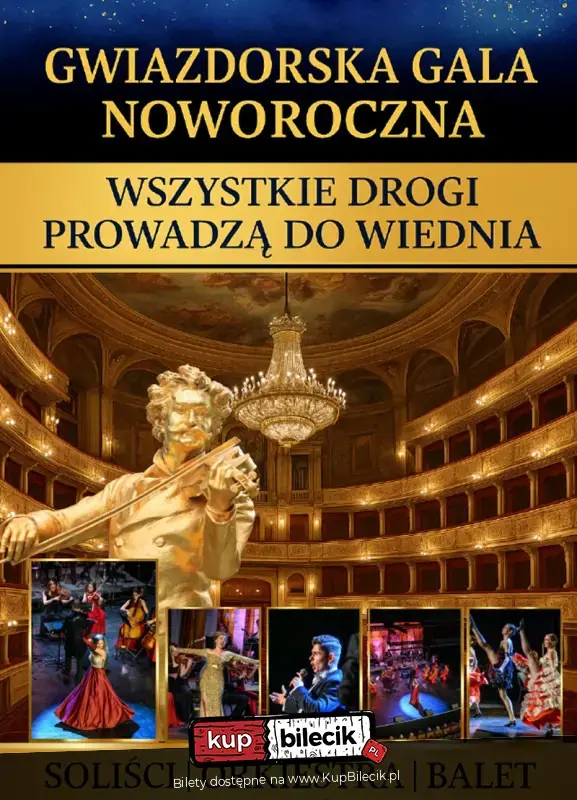 Artyści zachwycają publiczność kunsztem wokalnym, sceniczną charyzmą oraz wyjątkowym wyczuciem stylu operetkowego, dzięki czemu każda aria i duet nabierają niepowtarzalnego charakteru i emocjonalnej głębi. Wyjątkowym elementem widowiska będzie udział solistów Grand Royal Ballet, których taneczna elegancja i precyzja ruchu przeniosą widzów do świata wiedeńskich salonów i balowych tradycji. To koncert pełen światła, emocji i muzycznej magii - wieczór, podczas którego walc ponownie zakręci światem, a publiczność poczuje atmosferę prawdziwego noworocznego koncertu w wiedeńskim stylu. Serdecznie zapraszamy na niezapomniane muzyczne wydarzenie!