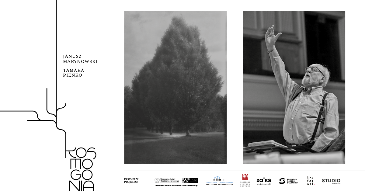 Na wystawie zostaną zaprezentowane zdjęcia wykorzystane w albumie „Kosmogonia”, poświęconym miłości Krzysztofa Pendereckiego do muzyki i natury. Ten swoisty artystyczny dyptyk składa się z fotografii autorstwa Janusza Marynowskiego i Tamary Pieńko, które współtworzą czarno-biały obraz pozornie osobnych, a jednak niezwykle spójnych i uzupełniających się światów. Stanowią nacechowaną emocjami artystyczną dokumentację muzyczno-ogrodowej partytury „napisanej” przez Pendereckiego. Projekt powstał z okazji 90. urodzin Maestra.