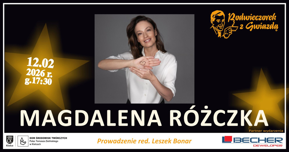 Wstęp: 30 zł (do 08.02.2026 r.), później 40 zł. Zapraszamy na kolejne spotkanie z cyklu Podwieczorek z Gwiazdą – tym razem gościem red. Leszka Bonara będzie Magdalena Różczka – aktorka filmowa, serialowa, teatralna i dubbingowa, znana z wielu rozpoznawalnych ról w polskich produkcjach. Zanim związała się zawodowo z aktorstwem, studiowała informatykę i socjologię, a ostatecznie ukończyła Wydział Aktorski Akademii Teatralnej w Warszawie w 2004 roku. Szeroką popularność przyniosły jej role w serialach takich jak „Czas honoru”, „Usta Usta” czy „Lekarze”, a także w filmach takich jak „Lejdis”, „1800 gramów” czy „Listy do M.”. Jest też cenioną aktorką dubbingową. Poza aktorstwem aktywnie angażuje się w działalność społeczną i charytatywną. W...