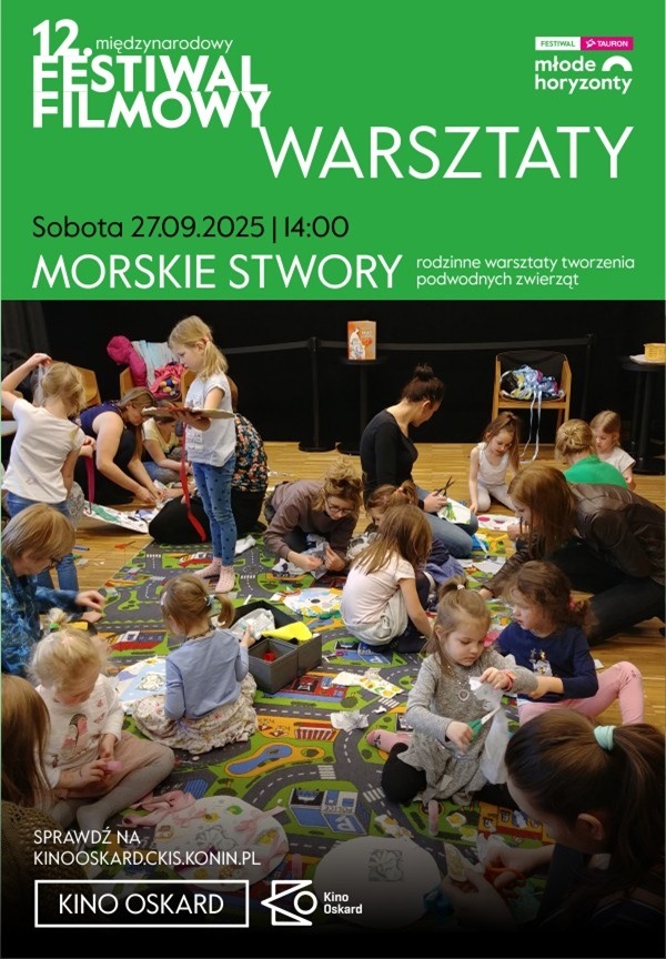 W ramach 12. międzynarodowego festiwalu filmowego TAURON Młode Horyzonty zainspirowani pełnym emocji filmem „Vincent, Legenda oceanu” – stworzymy własne, ruchome morskie stworzenia z materiałów twórczych i ekologicznych. Wykorzystamy czyste odpady takie jak tektura, folia bąbelkowa, tiul, pianka i innego rodzaju recykling – by dać im nowe życie jako wielkoformatowe rzeźby, których ruch będzie budzić wyobraźnię. Podczas spotkania: - porozmawiamy o fascynacjach morzem i morskimi stworzeniami, - podzielimy się tytułami ulubionych filmowych, morskich opowieści i osobistymi marzeniami o oceanie, - zanurzymy się w wodnym ruchu, zabawach ruchowych inspirowanych wodą, - każda rodzina zaprojektuje i wykona dużego, pływającego w przestrzeni morskiego...