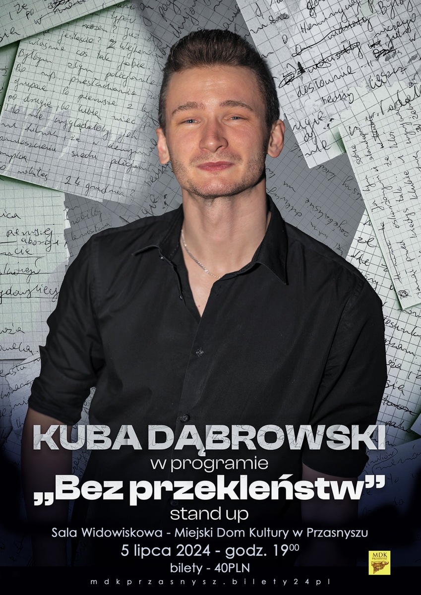 "Bez przekleństw" – tak nazwałem mój nowy program komediowy, gdyż w całym moim występie nie pojawi się ani jedno słowo powszechnie uważane za wulgarne. W poprzednich programach dostawałem komentarze w różnych serwisach społecznościowych tj. "a po co tyle przekleństw?", "no i to jest polski stand up- rzuci kilkoma wulgaryzmami i myśli, że jest śmieszny". Postanowiłem z tym nie walczyć, tylko wyjść naprzeciw oczekiwaniom widzów. Nie będę ukrywał, że nie było łatwo skomponować cały program tak, żeby ani razu nie przekląć i to jest super wyzwanie. Co Was czeka w moim występie? Żarty, przede wszystkim żarty. Pojawią się takie, które będą przyjazne i dla starych i dla młodych. Pojawi się trochę ostrości i kontrowersji. Jednego jestem pewien, wyjdziecie z uśmiechem na twarzy, a o to przecież chodzi. Jak może wyglądać stand-up bez przekleństw? Przyjdźcie i sprawdźcie sami!