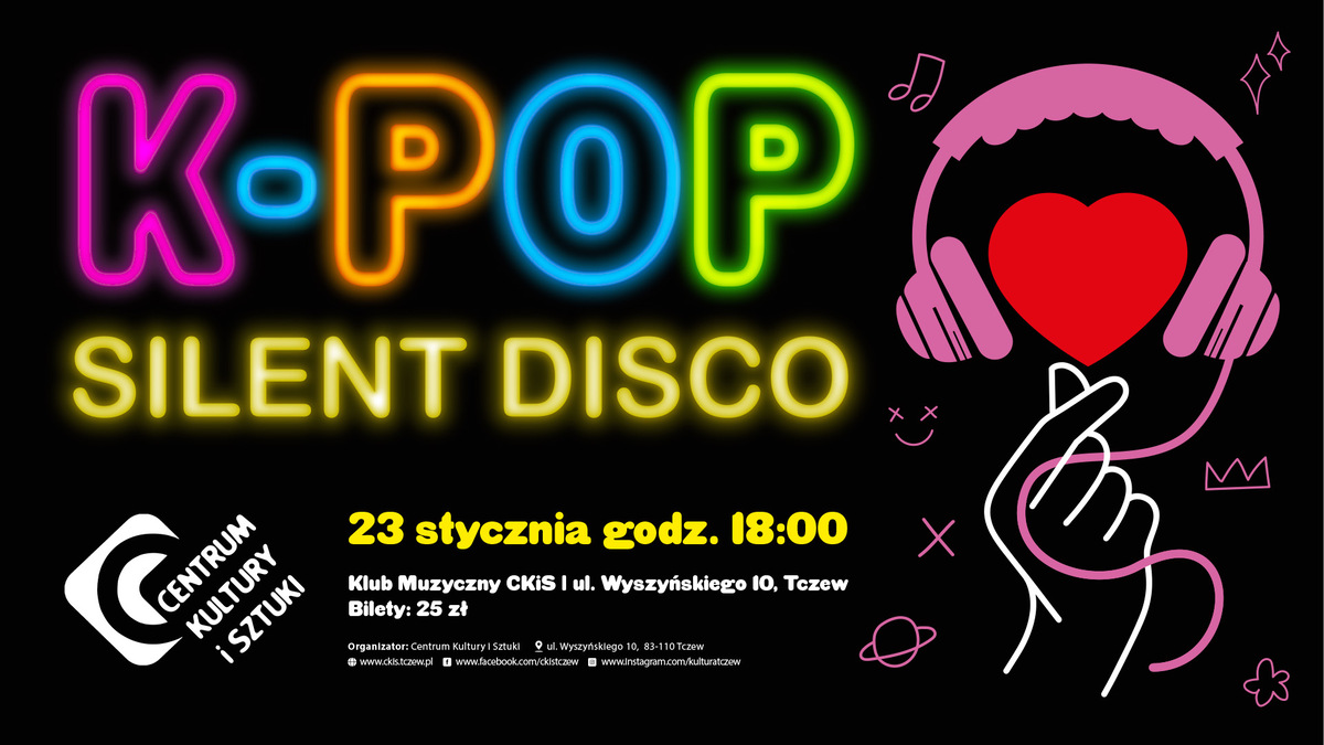 Zapraszamy na jedyne w swoim rodzaju K-POP Silent Disco – afterparty organizowane tuż po pierwszym k-popowym koncercie w Trójmieście! Spotykamy się w Tczewie, by wspólnie przeżyć kolejną falę emocji w rytmie Waszych ulubionych k-popowych hitów. Załóż słuchawki, wybierz kanał z muzyką i zanurz się w zabawie podczas naszych Artystycznych Ferii Zimowych.