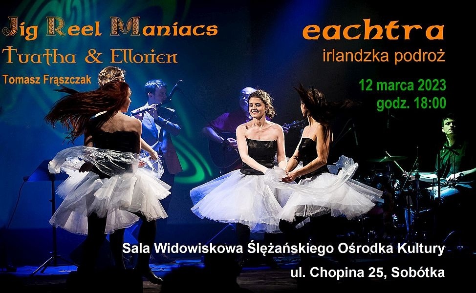Zapraszamy w niedzielę 12 marca 2023 o godz.18:00 do sali widowiskowej Ślężańskiego Ośrodka Kultury na widowisko muzyczno-taneczno-multimedialne EACHTRA – Irlandzka Podróż