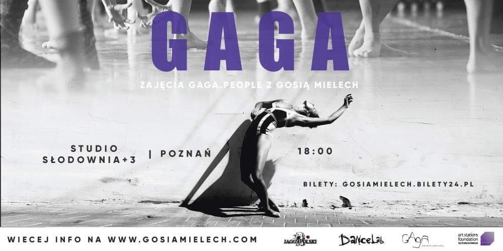 Zapraszamy na odbywające się cyklicznie zajęcia Gaga/people o godzinie 18.00, w Stary Browar Nowy Taniec, w przepięknym Studio Słodownia + 3, w Poznaniu. *Niepotrzebne jest jakiekolwiek doświadczenie z tańcem, aby wziąć udział zajęciach Gaga/people. Jedyne regularne zajęcia Gaga z Gosią Mielech w Poznaniu! Gaga jest językiem ruchowym opracowanym na przestrzeni wielu lat przez Ohada Naharina i stosowanym w codziennym treningu i praktyce tanecznej Batsheva Dance Company (Tel Aviv). Język Gaga jest nieustannie rozwijany i pogłębiany, opiera się na przekonaniu, że ruch ma leczącą, dynamiczną i nieustannie zmieniającą się moc. Gaga podnosi świadomość własnych fizycznych słabości, przebudza odrętwiałe obszary ciała, obnaża fizyczne zafiksowania...