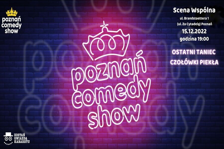 "POZNAŃ COMEDY SHOW", czyli połączenie wszystkiego, co w komedii najlepsze – skecze, stand up, piosenki, improwizacje, a do tego muzyka na żywo. Wszystko na jednej scenie, jednego wieczoru, jedynymi takimi prowadzącymi! Występują poznańscy artyści. OSTATNI TANIEC CZOŁÓWKI PIEKŁA, czyli pożegnanie Kabaretu Czołówka Piekła ze sceną i publicznością. Mile widziane kwiaty, znicze etc. UWAGA ZMIANA MIEJSCA _ Scena Wspólna ul. Brandsteattera w Poznaniu*******