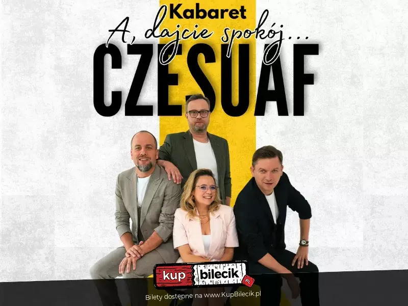 "A, dajcie spokój..." czyli nowy program kabaretu Czesuaf, który powstał z potrzeby serca ... i nerwów. Bo jak tu żyć spokojnie, gdy wszystko dookoła aż prosi się o komentarz? My nie wytrzymaliśmy i wy też nie wytrzymacie... ze śmiechu. Nowy program to świeża dawka humoru, ciętej satyry i celnych obserwacji rzeczywistości. Nie zabraknie nowych postaci, zaskakujących point i tematów, które aż proszą się o komentarz w krzywym zwierciadle.