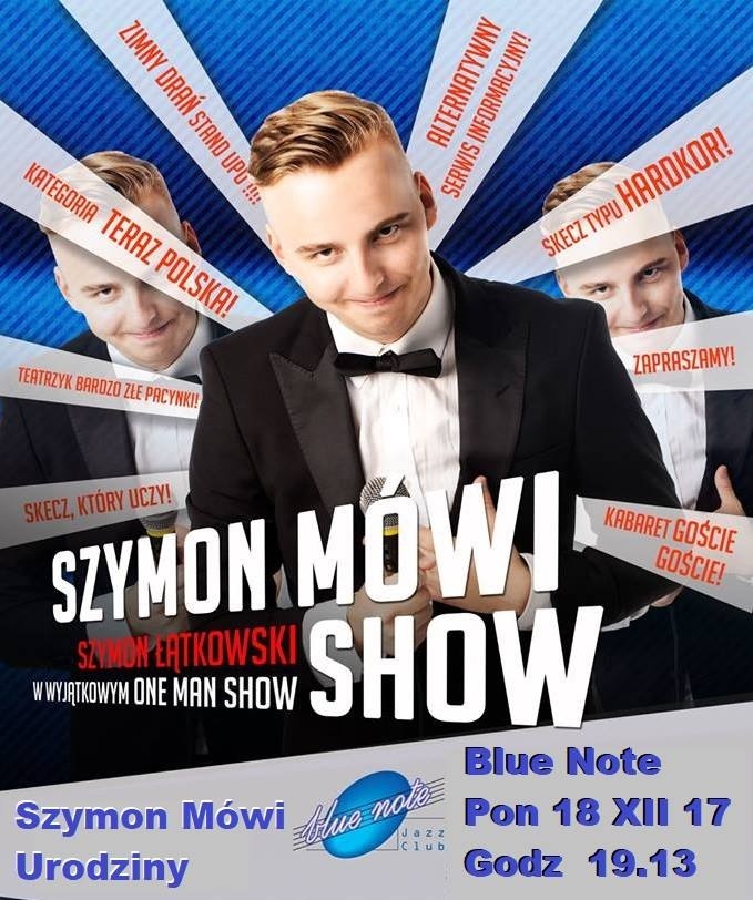 Prawie coroczne! Prawie najlepsze na świecie! Dwugodzinne komediowe show prawie znanego komika Szymona Łątkowskiego! Szymon Łątkowski to ja, a Szymon Mówi Urodziny, to moje sceniczne urodziny - szalona dwugodzinna podróż po świecie jednoosobowych małych i dużych form scenicznych. Co w tym roku? Skecz „Synonimiczna masakra” - o tym, jak fajne mamy dziennikarstwo dziś. Piosenka świąteczna o tym, jak to wesolutko jedziemy na święta do domu w ogóle nie w tłoku i o tym, jak w ogóle nie wku[…]my się na tłok w centrach handlowych, do których w ogóle nie chodzimy w grudniu. Kawałek super stand-upu (stand-up, to nie kabaret – wiem, wiem) Oficjalne wystąpienie Prezes Rady Ministrów w gabinecie Prezesa wszystkich Prezesów. Monolog „na telefonie” o synu,...