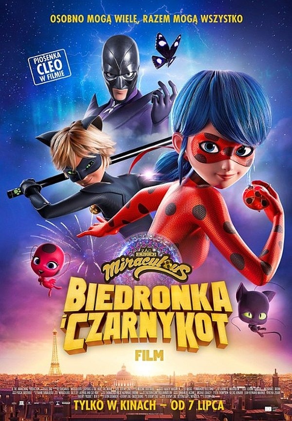 Kiedy tajemniczy złoczyńca zaczyna grozić Paryżowi czarną magią, do walki z nim staje Marinette, nieśmiała nastolatka przemieniona w superbohaterkę – Biedronkę. Ucząc się nowych mocy i próbując pogodzić niebezpieczną misję z obowiązkami w domu i szkole, dziewczyna łączy siły z charyzmatycznym obrońcą sprawiedliwości – Czarnym Kotem. Marinette nie wie jednak, że pod maską bohatera ukrywa się Adrien, jej kolega z klasy, w którym od dawna jest zakochana. Kiedy sekrety Biedronki i Czarnego Kota połączą się, a serca zaczną bić jednym rytmem, niezwykły duet zjednoczy się, by pokonać Władcę Ciem i ocalić miasto. Tak rozpocznie się przygoda, która zabierze młodych bohaterów w niezwykłą podróż od podziemnych katakumb Paryża po sięgający nieba szczyt Wieży Eiffla i pokaże, że największą siłą i bronią może być prawdziwa miłość.