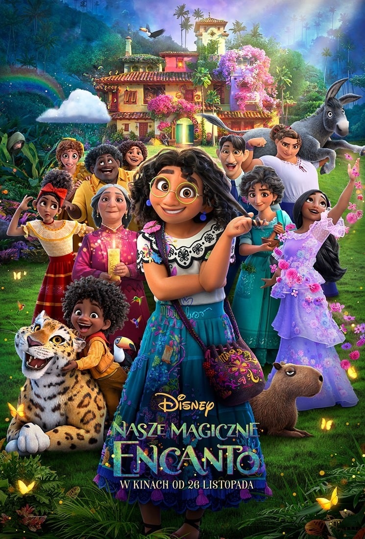 Prod. USA 2021, animacja/familijny, 100 min. „Nasze magiczne Encanto” opowiada historię niezwykłej rodziny Madrigal. Ich pełen magii dom znajduje się w tętniącym życiem mieście - w cudownym i urokliwym miejscu zwanym Encanto, ukrytym w górach Kolumbii. Magia Encanto sprawiła, że każde dziecko w rodzinie posiada wyjątkową moc uzdrawiania, z wyjątkiem Mirabel. Kiedy magia otaczająca Encanto jest w niebezpieczeństwie, Mirabel odkrywa, że to właśnie ona, jako jedyna zwyczajna osoba w tej wyjątkowej rodzinie, może być jej ostatnią nadzieją.*******