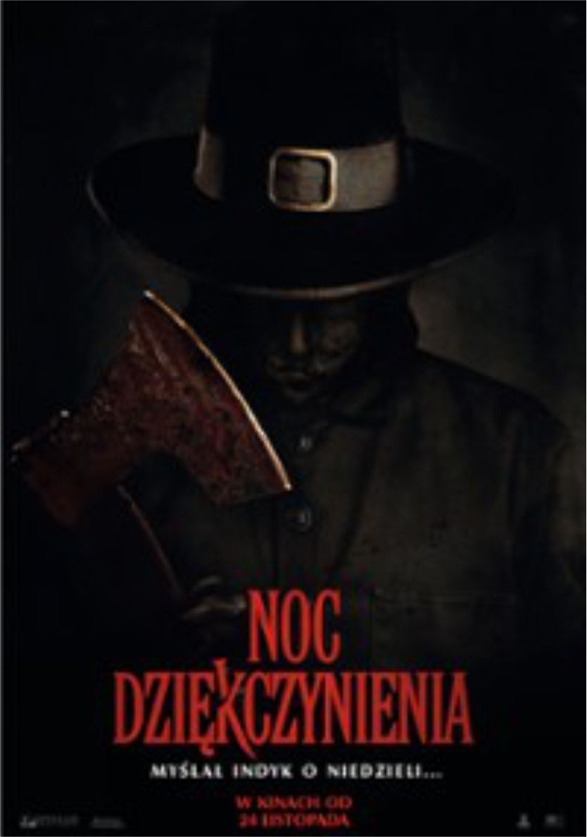 Prod. USA 2023, horror, 110 min. Mieszkańcy miasta Plymouth, kolebki Święta Dziękczynienia, porzucają tradycyjne, rodzinne zgromadzenia, by celebrować kolejne święto – konsumpcyjny Black Friday. Żądza posiadania doprowadza do tragicznych w skutkach zamieszek, które stają się viralowym hitem w sieci. Rok później tajemniczy seryjny zabójca, znany jako John Carver, w akcie zemsty postanawia wybić mieszkańców Plymouth jednego po drugim, zgodnie z niepojętym, złowrogim planem. Czy uda się ująć zagadkowego sprawcę, czy też starannie dobierane ofiary pełnić będą rolę gości przy jego wynaturzonym, dziękczynnym stole?*******