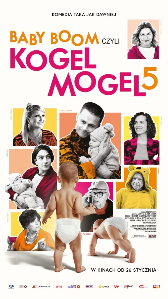 Jedna rodzina, tysiąc skandali! Do kin powraca wyjątkowa, patchworkowa rodzina: Wolańskich i Zawadów. „Baby boom, czyli Kogel Mogel 5” wejdzie do kin już 26 stycznia. W kontynuacji słynnej serii nie zabraknie tego, za co widzowie ją pokochali: zaskakujących zwrotów akcji, brzemiennych w skutki nieporozumień i wyrazistych postaci. Czego możemy spodziewać się w piątej części „Kogla Mogla”? Piotruś – razem z żoną, teściową oraz Leopoldem – przenosi się do nowego domu: zabytkowego dworku. A Marlenka postanawia przy okazji znaleźć rodzinie odpowiedniego, pasującego do eleganckiej rezydencji przodka… Z kolei Agnieszka robi na uczelni karierę, ale tuż po obronie doktoratu nagle odkrywa, że jest w ciąży. A gdy na świat przychodzi mały Kuba… zaczynają się problemy! Piotruś towarzyszy siostrze w trakcie porodu i sam zaczyna marzyć o dziecku – ku przerażeniu Marlenki. Marcin, świeżo upieczony tata, wpada w panikę i nagle znika. A do tego w Brzózkach zjawia się tajemnicza Kamila – dziewczyna w zaawansowanej ciąży, która szuka właśnie Zawady… Na ekranie ponownie obsada znana z poprzednich części: Maciej Zakościelny, Katarzyna Skrzynecka, Aleksandra Hamkało, Nikodem Rozbicki, Grażyna Błęcka-Kolska, Zdzisław Wardejn, Dorota Stalińska, Marian Opania, Małgorzata Rożniatowska, Wiktor Zborowski, Joanna Jarmołowicz, Wojciech Solarz, Mayu Gralińska-Sakai, Krzysztof Szczepaniak. Za reżyserię odpowiada Anna Wieczur. Producentem jest Tadeusz Lampka (MTL Maxfilm).