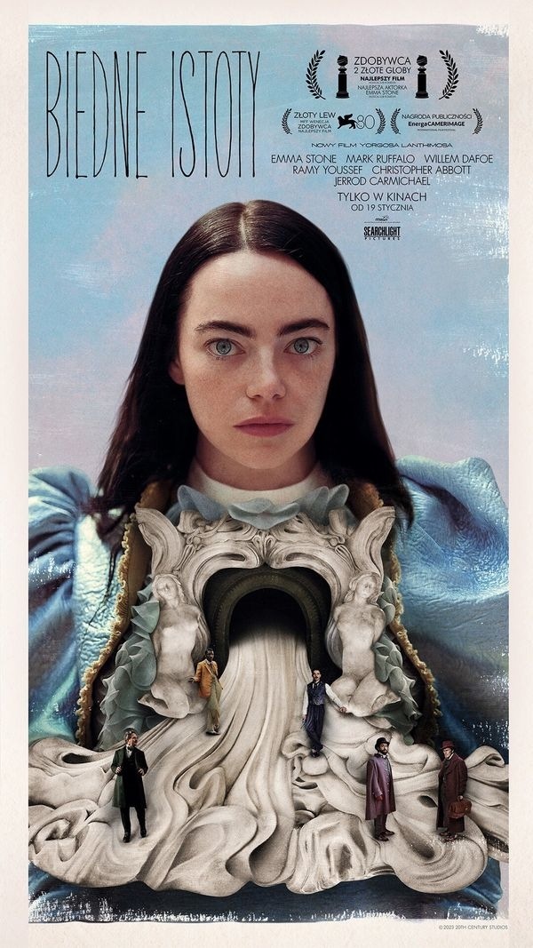 "Biedne istoty" w reżyserii Yorgosa Lanthimosa to niesamowita opowieść o ewolucji Belli Baxter (Emma Stone), młodej kobiety, która zostaje przywrócona do życia przez genialnego i niekonwencjonalnego naukowca, doktora Godwina Baxtera (Willem Dafoe). Pod jego opieką Bella chętnie uczy się wszystkiego od nowa, ale chce też doświadczyć pełni życia. W poszukiwaniu nowych doznań wyrusza w burzliwą i pełną przygód podróż przez kontynenty w towarzystwie sprytnego i rozpustnego prawnika, Duncana Wedderburna (Mark Ruffalo). Wolna od uprzedzeń swoich czasów, Bella z determinacją dąży do celu, jakim jest walka o równość i niezależność.