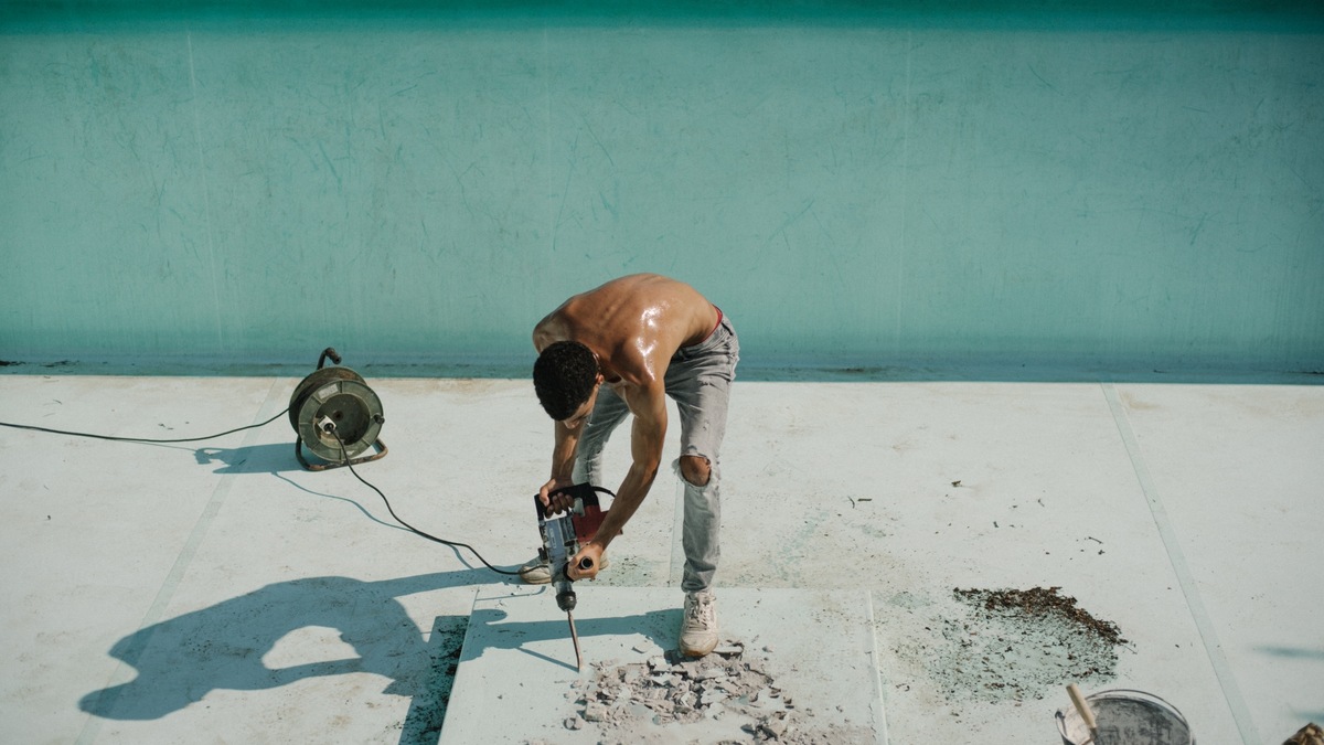 Tytułowa cisza nie ma w sobie nic sielskiego, choć akcja filmu rozgrywa się w wakacje, na włoskiej wyspie, gdzie wynajmują dom z widokiem Anna (Agnieszka Żulewska) i Adam (Dobromir Dymecki). Z daleka, jak wiadomo, widok jest piękny, dlatego małżeństwo woli zachować dystans (fantastycznie uchwycony w zdjęciach Bartosza Świniarskiego, operatora „Niepamięci” Christosa Nikou). Pełna lodówka, pełne portfele, zabezpieczone alarmem drzwi i równie szczelnie zamknięte oczy gwarantują im ochronę przed kontaktem z rzeczywistością – do czasu, gdy odkryją, że w posiadłości nie działa basen. Usterka, której natychmiastowej naprawy żądają, niebezpiecznie rozszczelni jednak ich strefę komfortu, powodując przeciek, którym do wygodnego, zautomatyzowanego życia...