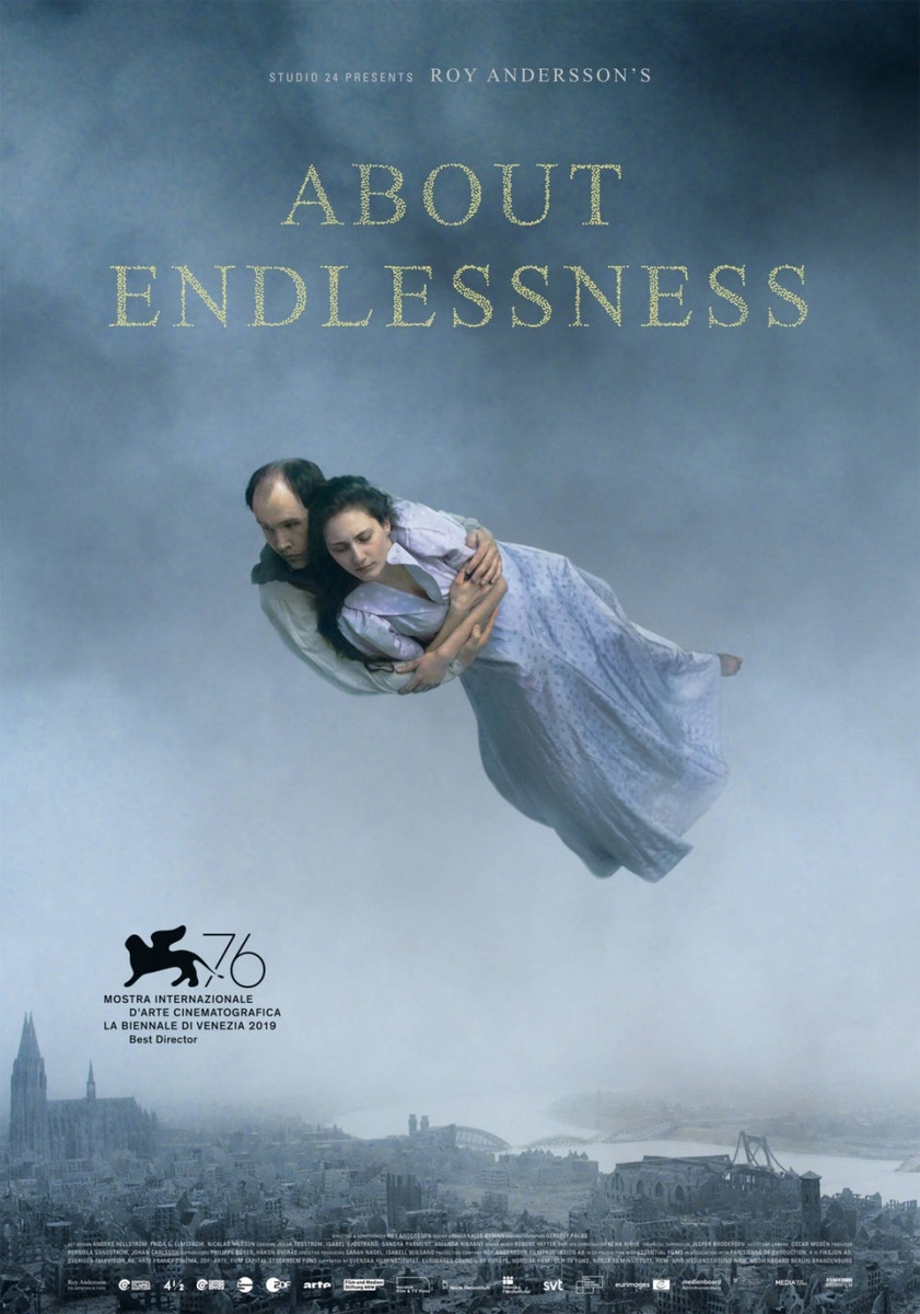 "O nieskończoności" wzbogaca filmowy dorobek Roya Anderssona o refleksję na temat ludzkiego życia w całym jego pięknie i okrucieństwie, świetności i banalności. Wędrujemy tu jak we śnie, a narrator prowadzi nas niczym Szeherezada. Błahe chwile mają te same znaczenie, co momenty historyczne. Para unosi się nad ogarniętą wojną Kolonią; w drodze na przyjęcie urodzinowe ojciec zatrzymuje się, by w deszczu zawiązać córce sznurowadła; nastolatki tańczą przed kawiarnią; pokonana armia zmierza do obozu jenieckiego. Film "O nieskończoności" - będąc jednocześnie odą i lamentem - prezentuje kalejdoskop tego, co ludzkie, oraz nieskończoną historię wrażliwości istnienia.*******