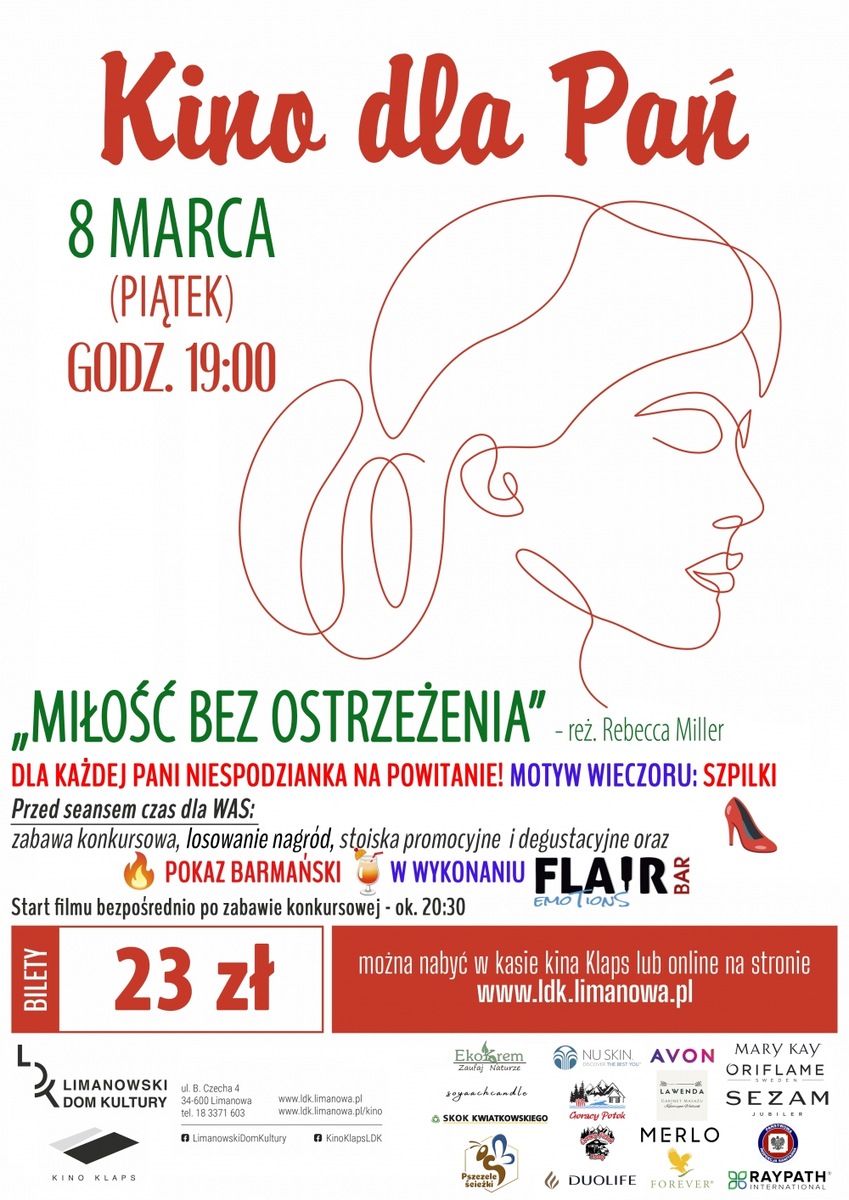 Kino Klaps w Limanowej zaprasza wszystkie panie do udziału w cyklu filmowym KINO DLA PAŃ. Raz w miesiącu spotkamy się aby porozmawiać, obejrzeć dobry film i spędzić miło czas we wspólnym gronie. Nadchodzące wydarzenie już 8 marca (piątek)!