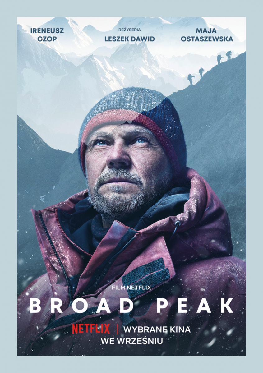 "Broad Peak" reż. Leszek Dawid Polska 2022 Broad Peak to oparta na prawdziwych wydarzeniach historia Macieja Berbeki – legendarnego polskiego himalaisty, należącego do grupy słynnych Lodowych Wojowników, który pragnął zdobyć szczyt jednej z najniebezpieczniejszych gór świata. To też pierwszy na świecie film fabularny, w którym zdjęcia z udziałem głównego aktora kręcone były na wysokości ponad 5 tys. n.p.m., a ekipa pracowała w Karakorum (5600 m n.p.m.).*******