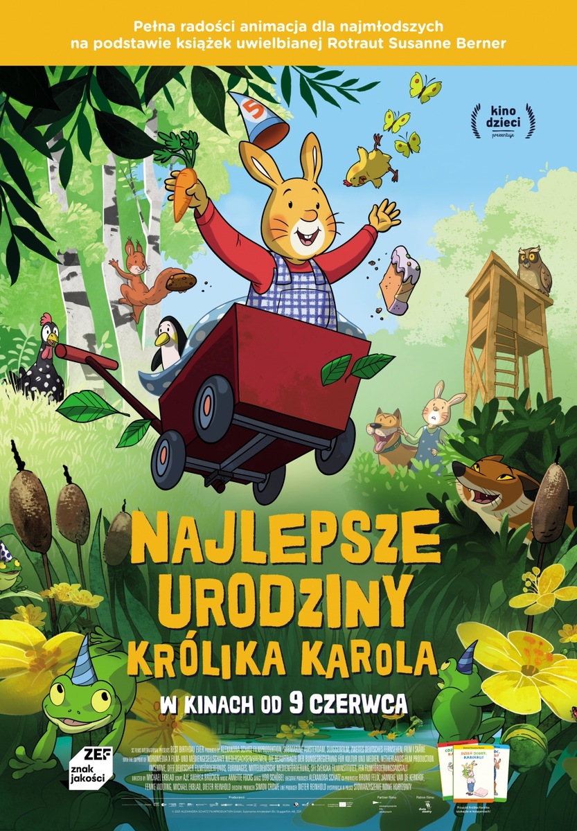 "Najlepsze urodziny Królika Karola" (Best Birthday Ever) Reż. Michael Ekblad Niemcy, Niderlandy, Szwecja, 2021 Sto lat Karol! Nadszedł wyczekiwany dzień dla Królika Karola – wreszcie kończy 5 lat. Huczne świętowanie urodzin stoi jednak pod znakiem zapytania. Czy przyjęcie odbędzie się zgodnie z planem? Spotkanie z przyjaciółmi, łowienie ryb z tatą i jedzenie tortu marchewkowego – to wszystko planował Królik Karol w swój wielki dzień. W końcu piąte urodziny obchodzi się raz w życiu! Rodzice nie poświęcają mu jednak tyle uwagi, co kiedyś, odkąd na świat przyszła jego młodsza siostra. Gdy w wyniku nieprzewidzianych zdarzeń mama i tata muszą go opuścić, postanawia uczcić święto po swojemu. Wyprawa u boku przyjaciółki Moniki i jej wesoło merdającego...