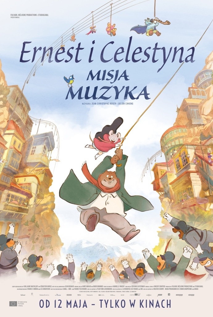 Niedźwiedź Ernest i mała myszka Celestyna podróżują do rodzinnej krainy poczciwego misia, aby naprawić zepsute skrzypce. Ta egzotyczna ziemia to również dom najlepszych muzyków na świecie, a jej powietrze stale przesycone jest dającymi radość dźwiękami. Jednak, gdy dwójka przyjaciół przybywa na miejsce, okazuje się, że granie jakiejkolwiek muzyki zostało tu zakazane wiele lat temu. Dozwolona jest tylko jedna nuta. Wszystko to za sprawą ustanawiających wymyślne prawa sędziów, którym przewodzi ojciec Ernesta. Dla niedźwiedzia i jego mysiej przyjaciółki to niewyobrażalne, bo oboje kochają wszelkie dźwięki. Wspólnie z poznanymi przyjaciółmi oraz tajemniczą zamaskowaną postacią, spróbują przywrócić muzykę i szczęście do krainy niedźwiedzi.*******
