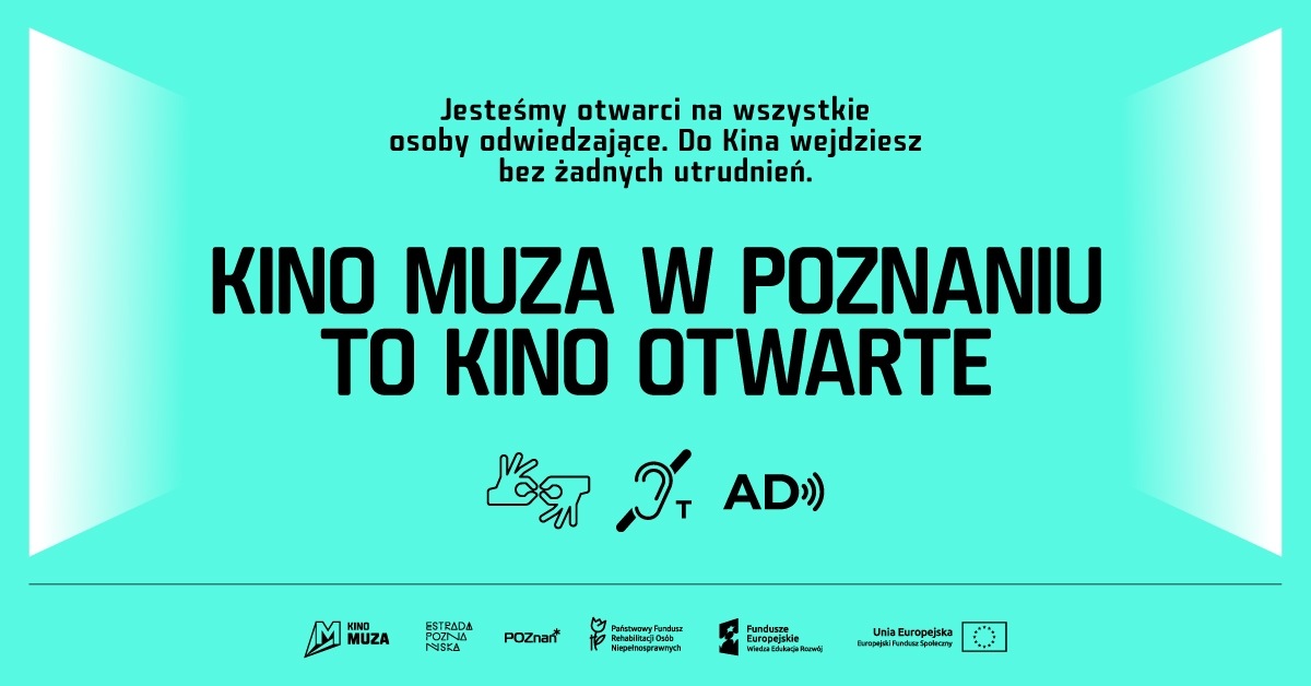 Uczestnikom zapewnimy: audiodeskrypcję, napisy dla niesłyszących, tłumacza PJM na żywo oraz przyjazną atmosferę kina studyjnego.